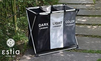 Καλάθι Απλύτων Υφασμάτινο Πτυσσόμενο 3Θέσεων Estia