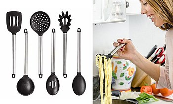 Σετ Ανοξείδωτα Εργαλεία Κουζίνας Με Σιλικόνη 6 Τεμ