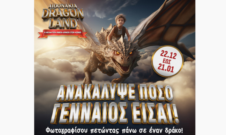 To AIDONAKIA-DRAGON LAND αποφάσισε, λόγω της αυξημένης ζήτησης και επιτυχίας, να παρατείνει το πιο κορυφαίο event με Δράκους στην Ελλάδα για 4 επιπλέον ημέρες, έως τις 28 Ιανουαρίου.