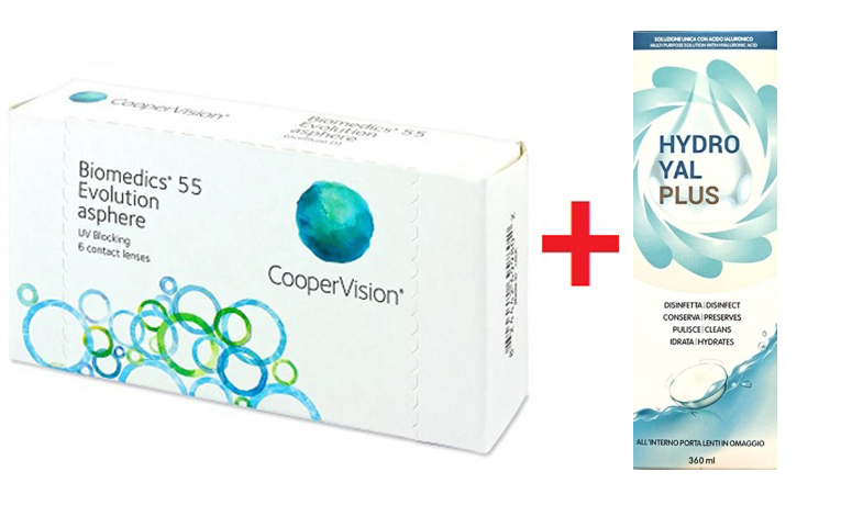 - COMBO DEAL: 21,90€ για 1 Συσκευασία με 6 Μηνιαίους Φακούς Επαφής Cooper Vision Biomedics 55 Evolution + Yγρό Φακών Hydro Yal Plus (360ml)