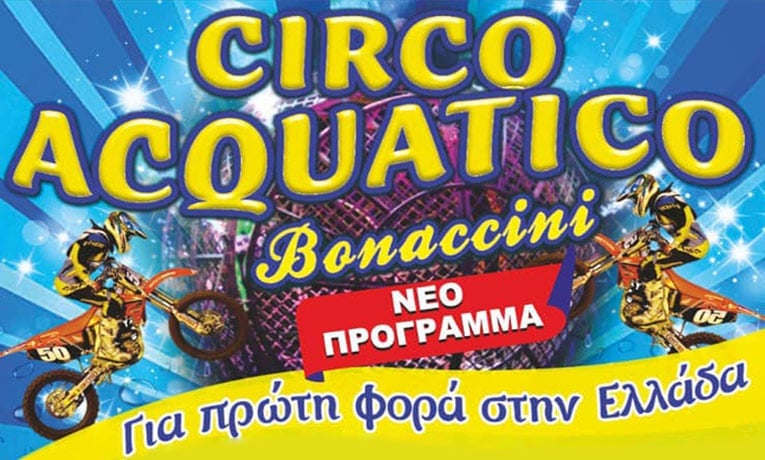 Το μεγάλο Ιταλικό Circo Acquatico Bonaccini μετά την πολύ επιτυχημένη περιοδεία του στην Ευρώπη, έρχεται στο Ηράκλειο, στο Γήπεδο Αμμουδάρας (όπισθεν Σκλαβενίτη), επί της οδού Κώστα Μητσοτάκη, από την Κυριακή του Πάσχα 5 Μαίου μέχρι και την Κυριακή 9 Ιουνίου 2024.