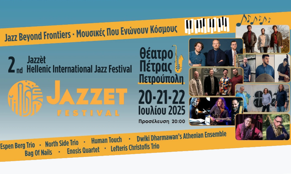 Αυτό το καλοκαίρι, η καρδιά της τζαζ θα χτυπά ξανά στο Θέατρο Πέτρας, εκεί όπου το Jazzèt – Hellenic International Jazz Festival επιστρέφει για δεύτερη χρονιά με ένα πρόγραμμα γεμάτο ποικιλία, ενέργεια και έμπνευση. Από τις 20 έως τις 22 Ιουλίου 2025, μουσικοί από την Ελλάδα, τη Σουηδία, τη Νορβηγία, τη Φιλανδία, τη Βρετανία και την Ινδονησία συναντώνται κάτω από το σύνθημα "Jazz Beyond Frontiers", σε μια τριήμερη συνάντηση που γκρεμίζει τα σύνορα των ειδών και των γεωγραφιών, με οδηγό τη δύναμη της δημιουργικής έκφρασης.